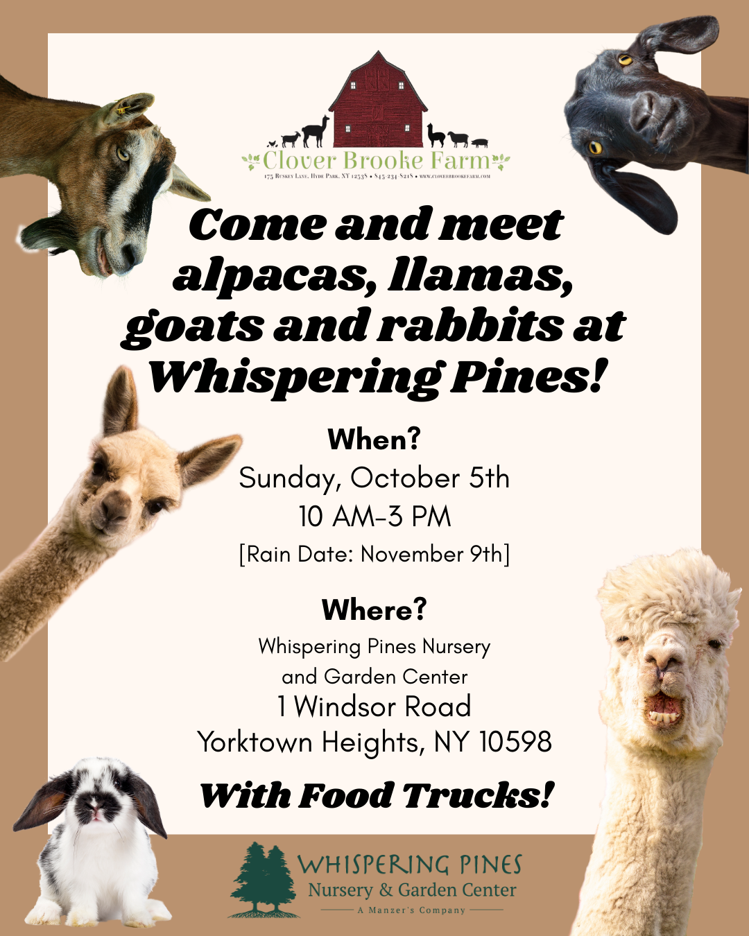 Meet alpacas, llamas, goats and rabbits with Food Trucks!